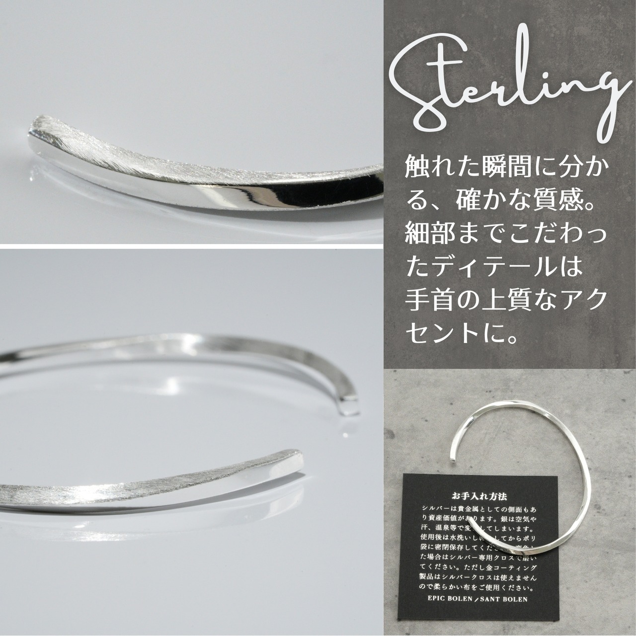 シルバー925 バングル メンズ レディース 細め シンプル ブレスレット 極細 プレーン ミニマル アクセサリー シルバーアクセサリー 銀 男性 女性 ペア ギフト カジュアル フォーマル 人気 ブランド 高級感 上品 定番 おしゃれ 大人 シンプルコーデ ギフトやプレゼント | EPIC BOLEN / SANT BOLEN