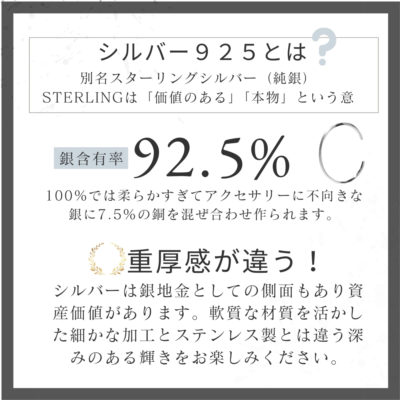 素材にはスターリングシルバー(シルバー925)を使用。