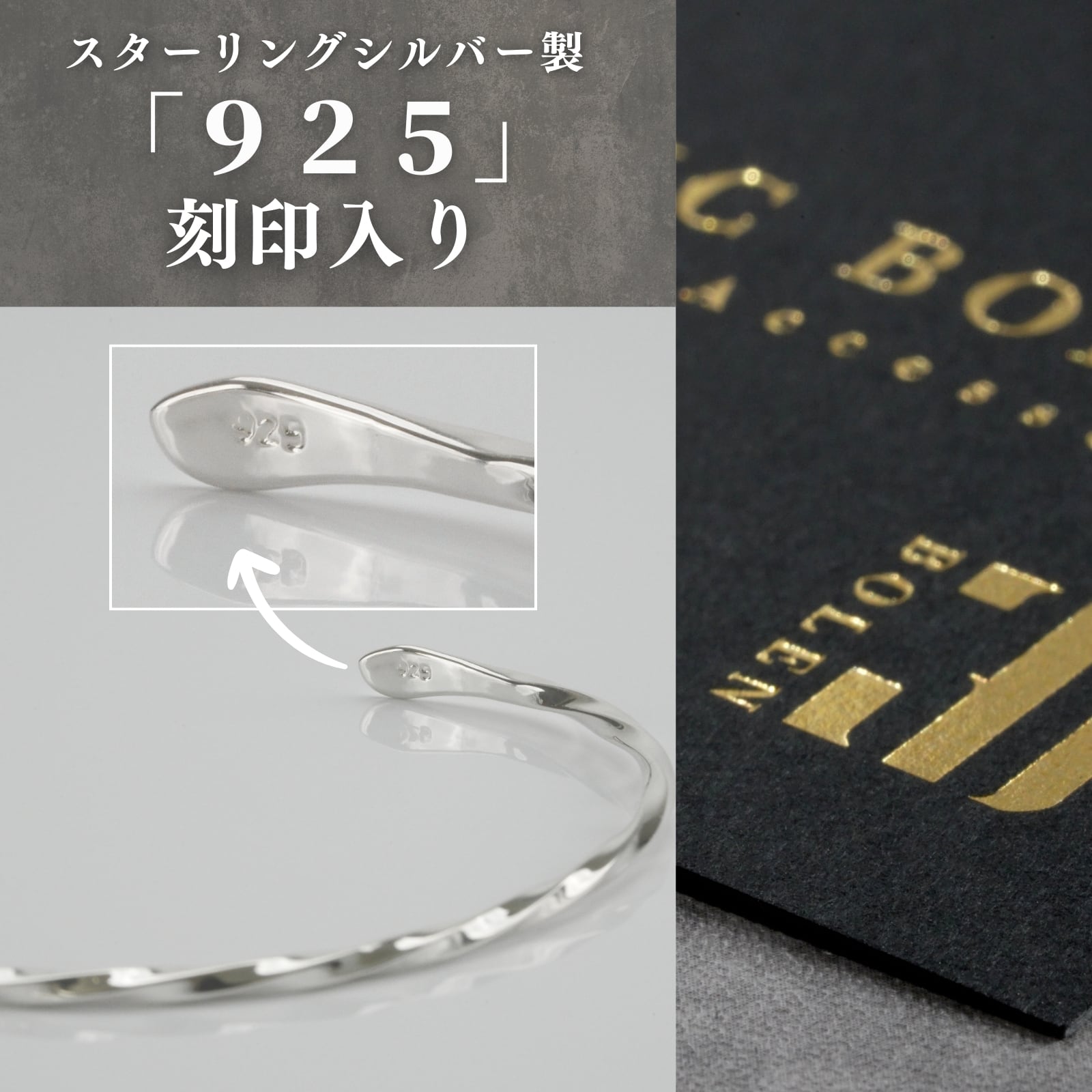 シルバー925を使用。 銀含有率92.5%の本格素材が、 ステンレスにはない柔らかな光沢と深みを生み出します。