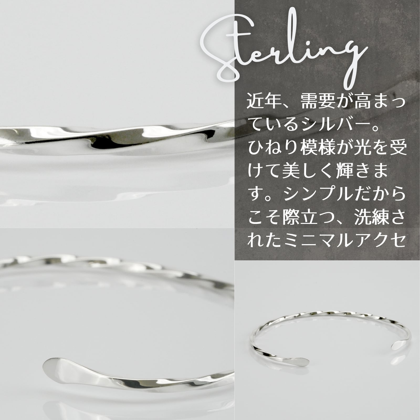 シルバー925 バングル メンズ 細め ツイスト シンプル フリーサイズ サイズ調整可能 スターリングシルバー ブレスレット 軽量 重ね付け おしゃれ 男性用 レディース ユニセックス アクセサリー 腕輪 銀 925刻印 上品 高級感 定番 人気 送料無料 プレゼント ギフト | EPIC BOLEN / SANT BOLEN