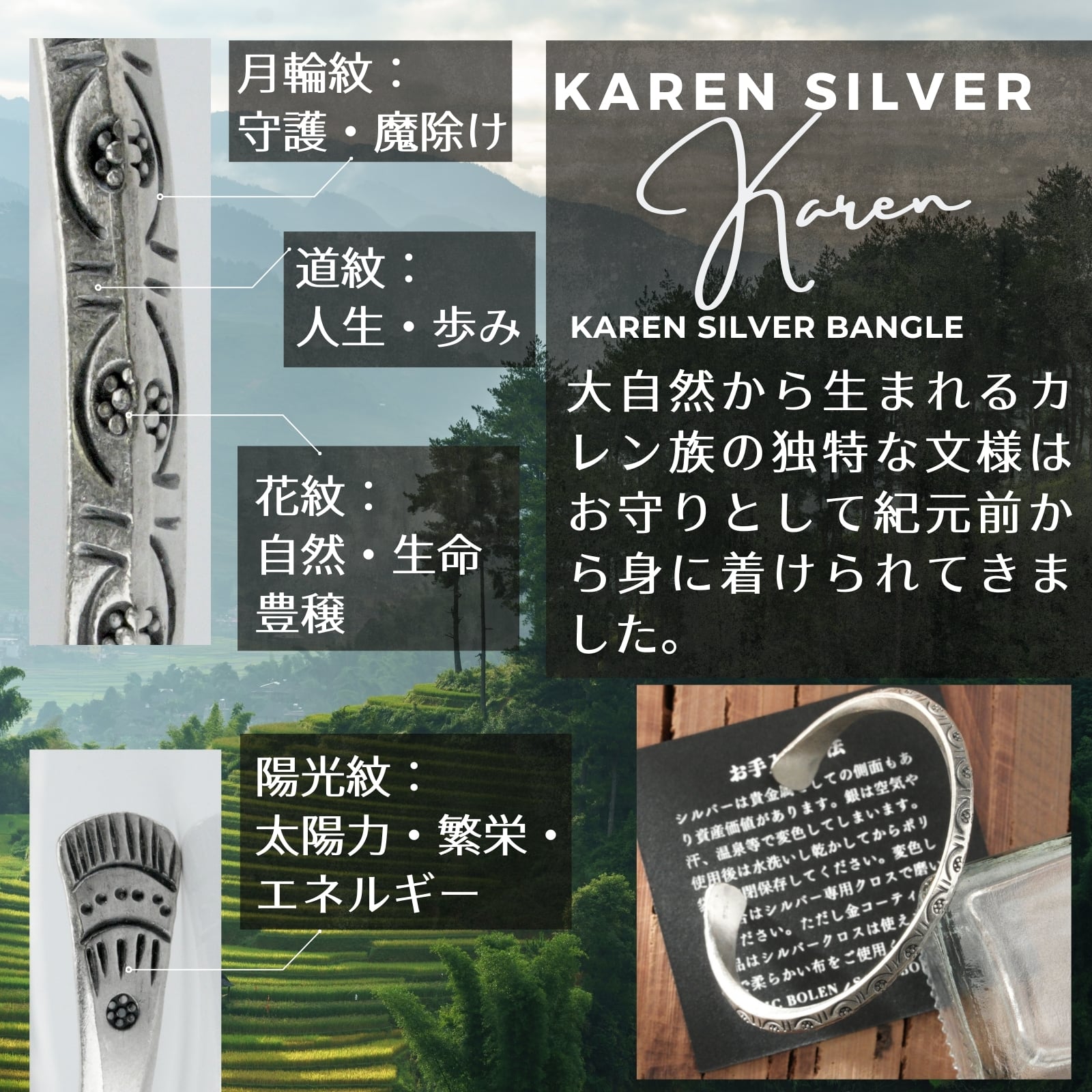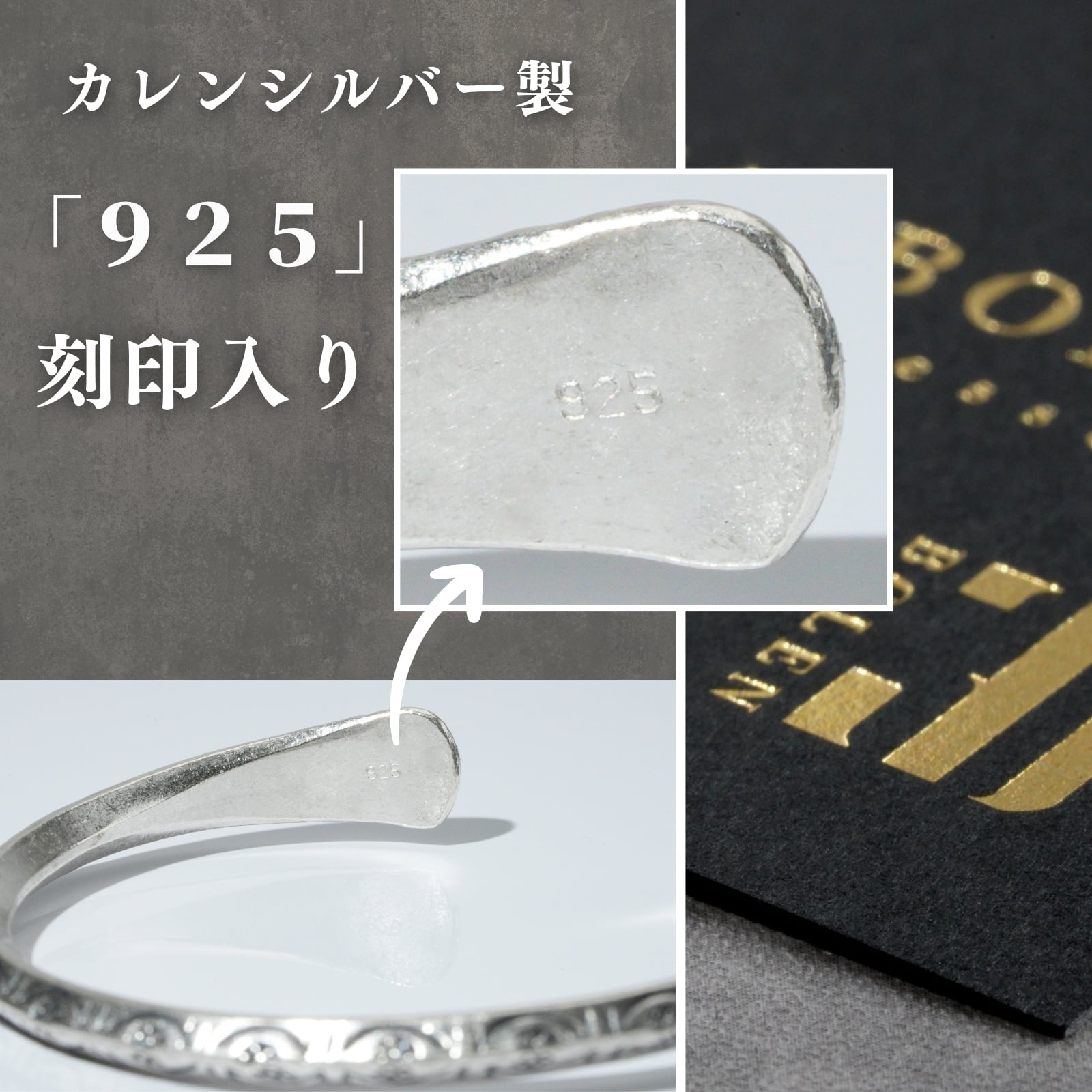 シルバー925 バングル メンズ レディース カレンシルバー 925刻印 スタンプワーク 幅4mm フリーサイズ サイズ調整可能 内周約15cm 過連続 ハンドメイド シンプル お守り ブレスレット 男女兼用 | EPIC BOLEN / SANT BOLEN
